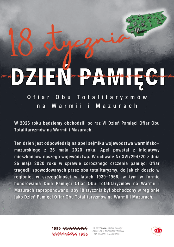 W 2026 roku, a dokładnie 18 stycznia, będziemy obchodzili po raz VI Dzień Pamięci Ofiar Obu Totalitaryzmów na Warmii i Mazurach.