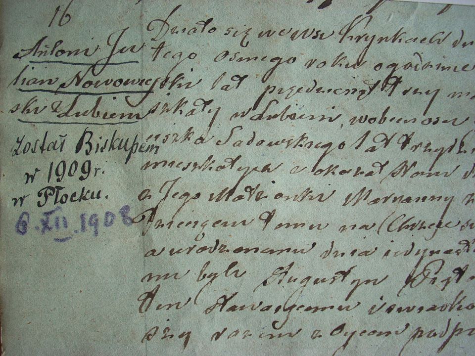„został biskupem w 1909 r. w Płocku”