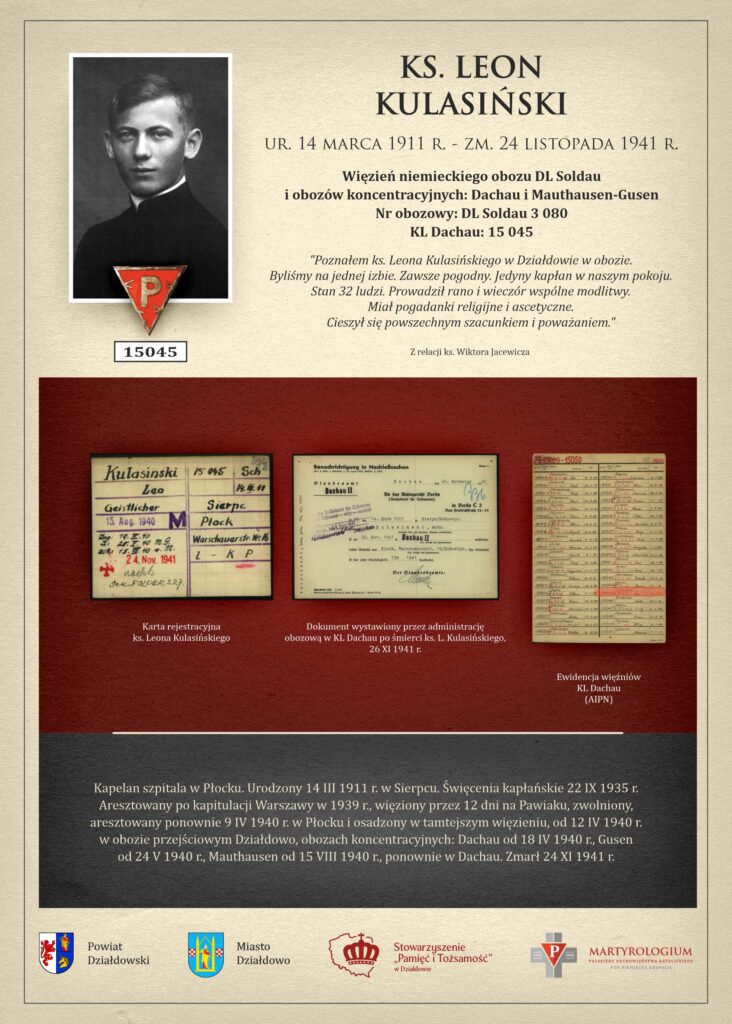 🔻W tym roku obchodzimy 85. rocznicę męczeńskiej śmierci młodego księdza Leona Kulasińskiego z diecezji płockiej, który zmarł w KL Dachau.