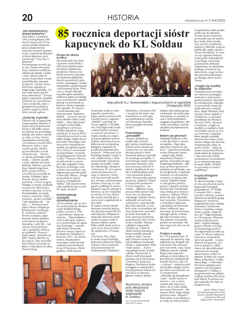 W najnowszym numerze miejskiej gazety ukazał się artykuł poświęcony deportacji sióstr Klarysek Kapucynek z Przasnysza do niemieckiego obozu KL Soldau (Działdowo). Autorem artykułu jest Siostra Maria Donata od Najświętszego Serca Pana Jezusa, Klaryska Kapucynka z Klasztoru w Przasnyszu.